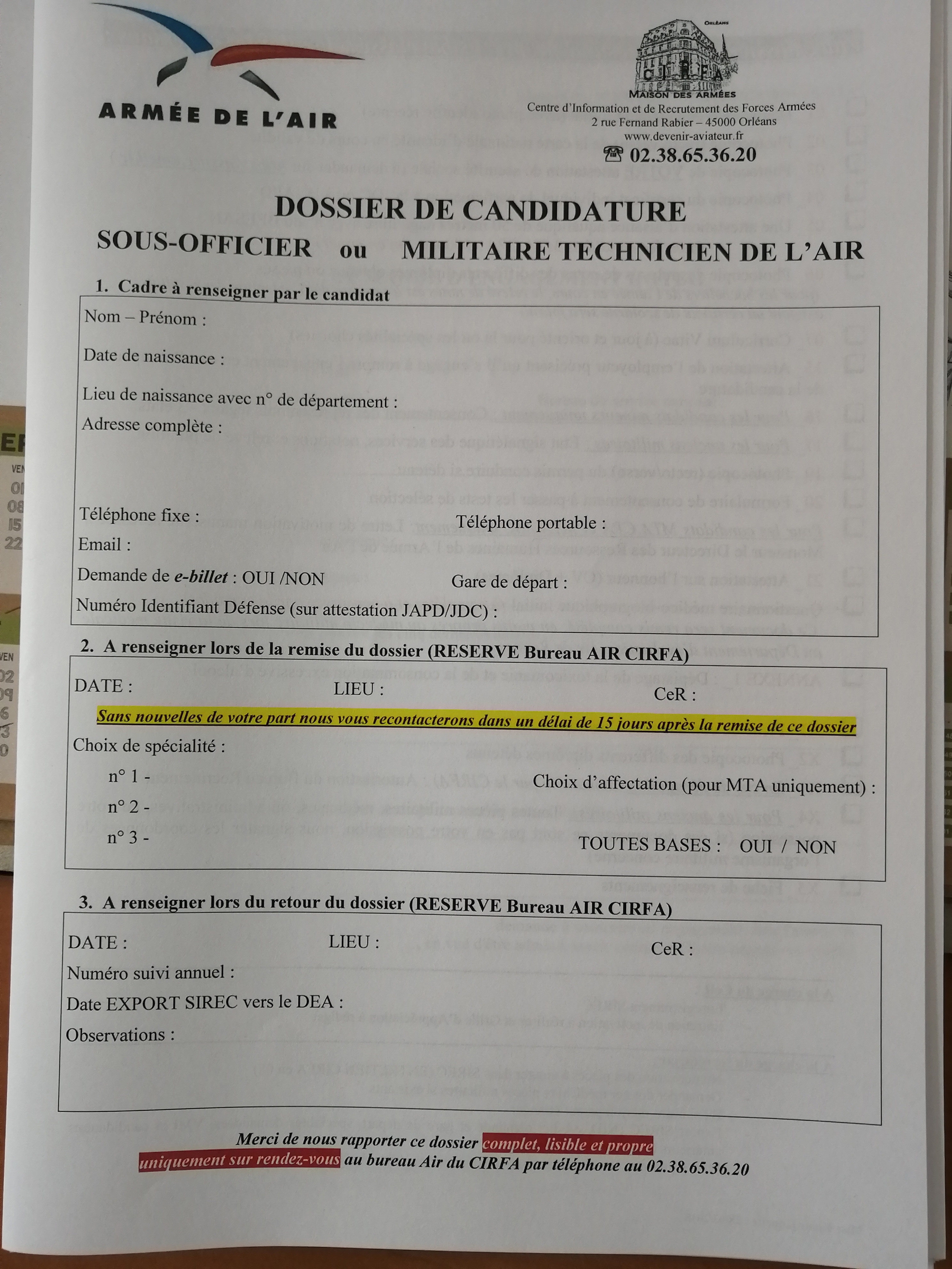 Environ 200 dossiers ont été faits pour l'armée de l'air, 50 pour la marine nationale